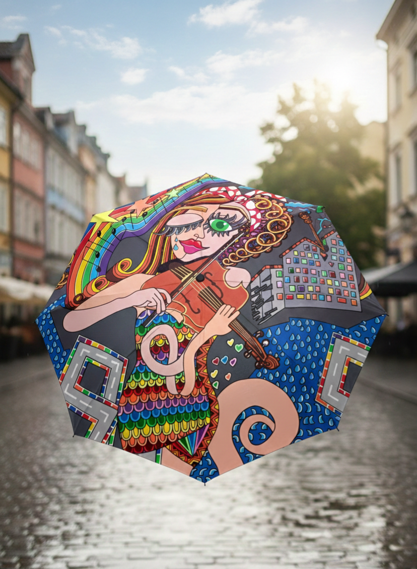 Parapluie automatique design artiste par l’artiste SELDA, neuve avec étiquette, 97 cm, fermé 28cm, épaisseur fermé 5cm, léger et robuste